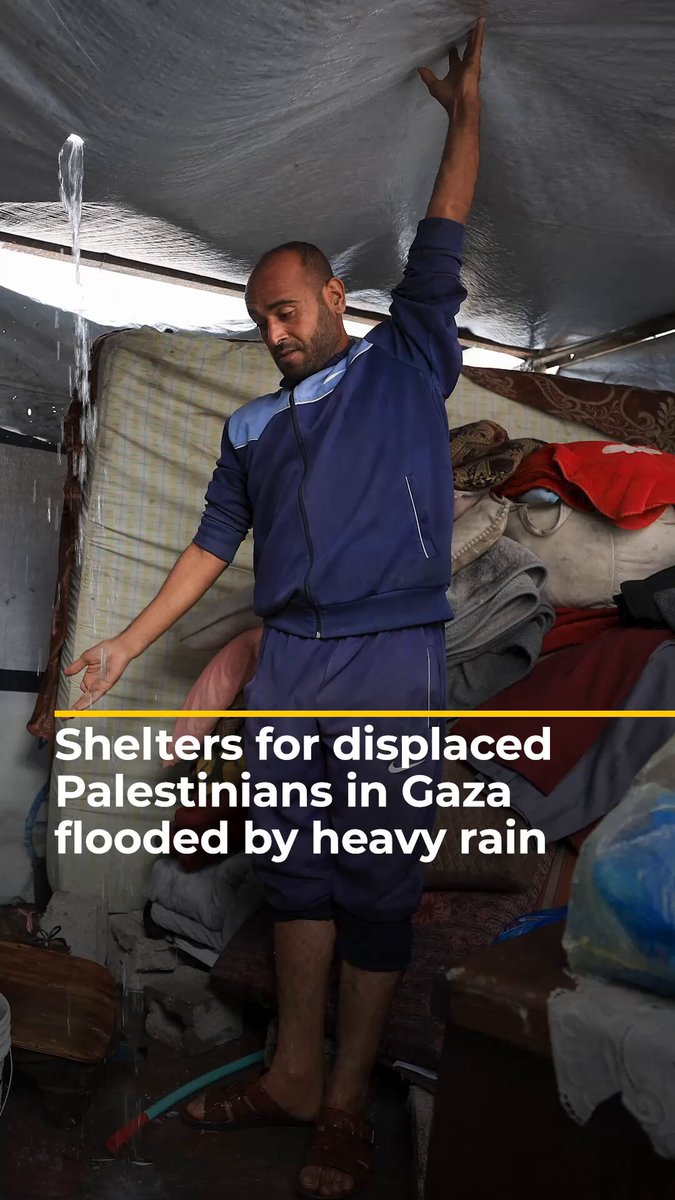 Während der Winter in Gaza Einzug hält, schreit eine vertriebene palästinensische Frau verzweifelt auf, als Regenwasser ihr provisorisches Zelt überflutet ... Zur Meldung